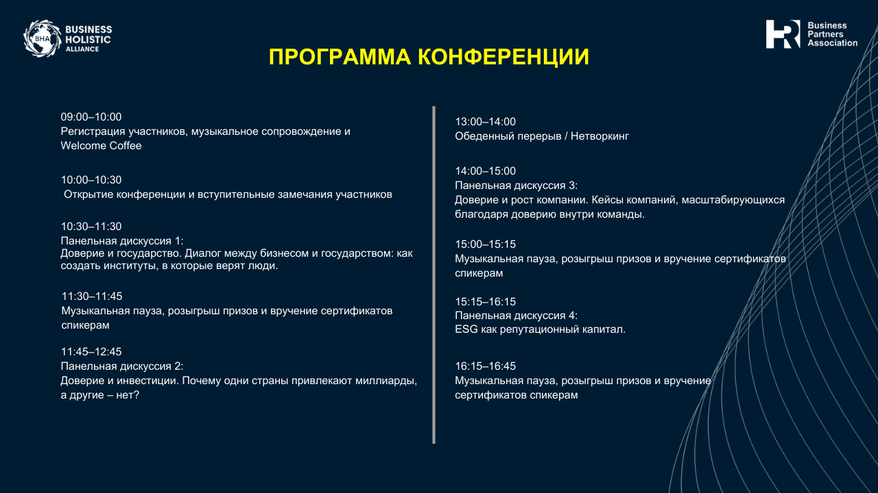 BUSINESS HOLISTIC 2025 объединяет лидеров, предпринимателей и экспертов для обсуждения роли доверия как ключевого ресурса устойчивого развития.